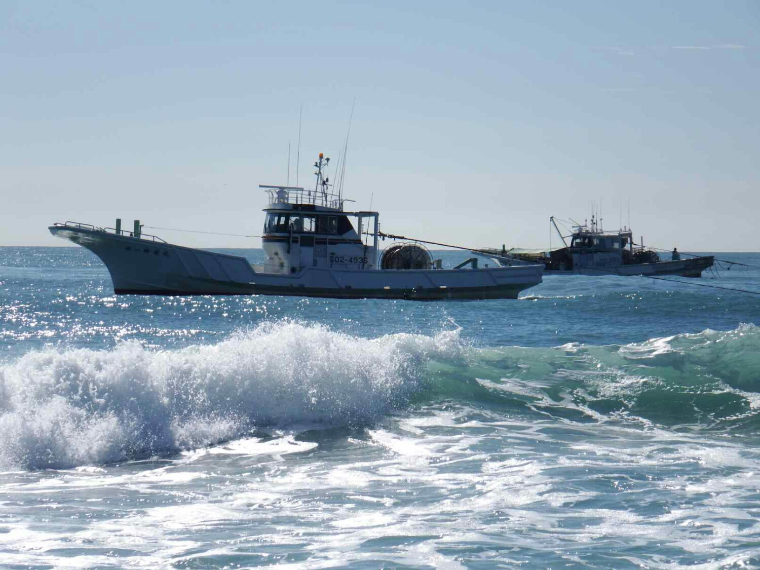 目の前をシラストロール船が…ジグをキャストすれば届く距離を右往左往し、実に騒々しいサーフだった!
