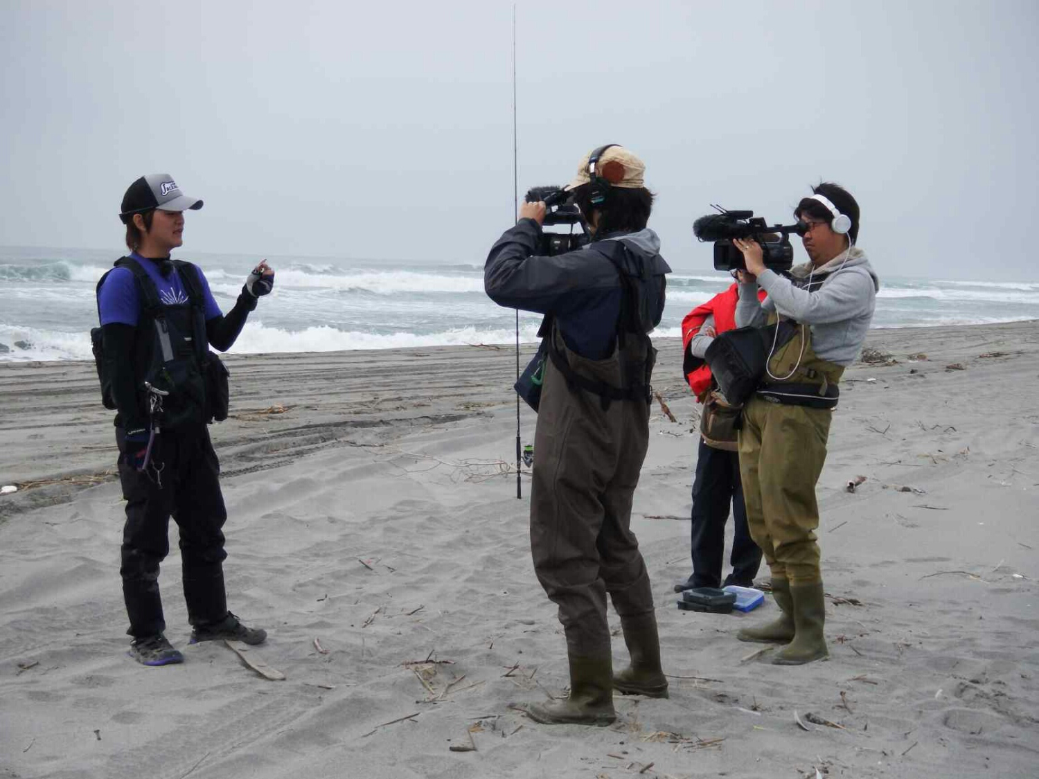 過去に見聞きした限り、有名アングラーの撮影と言えば、事前にポイントの情報が刻々と伝えられ、当日は地元サーフに精通したアングラーさんにガイドされ撮影!
