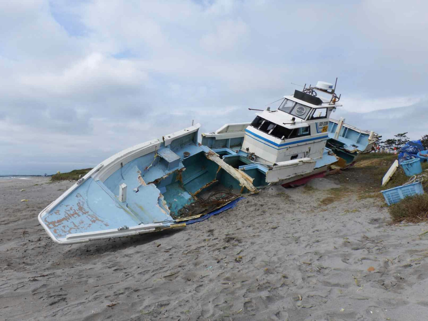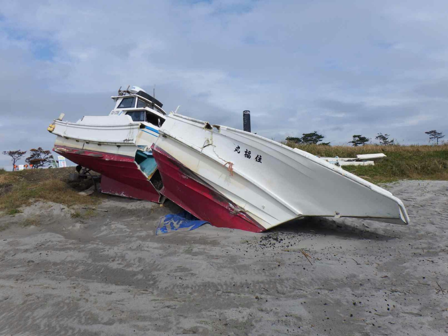 防潮堤近くまで打ち上げられていますが、引き上げられた痕跡が無いという事は、100mほど波で押し上げられたという事でしょうか?