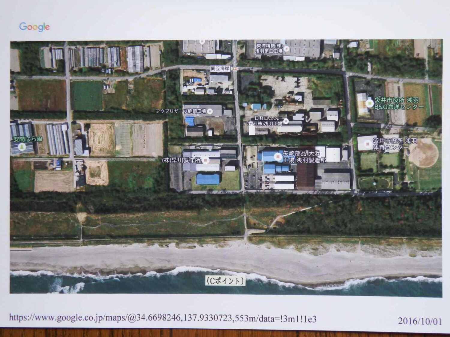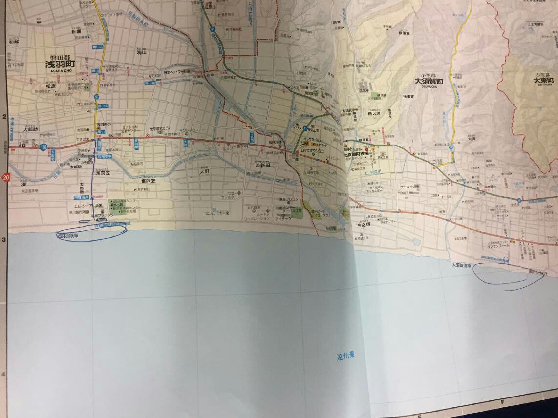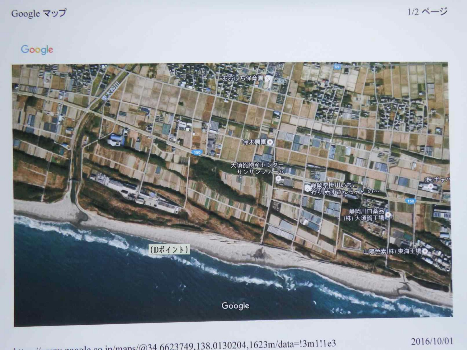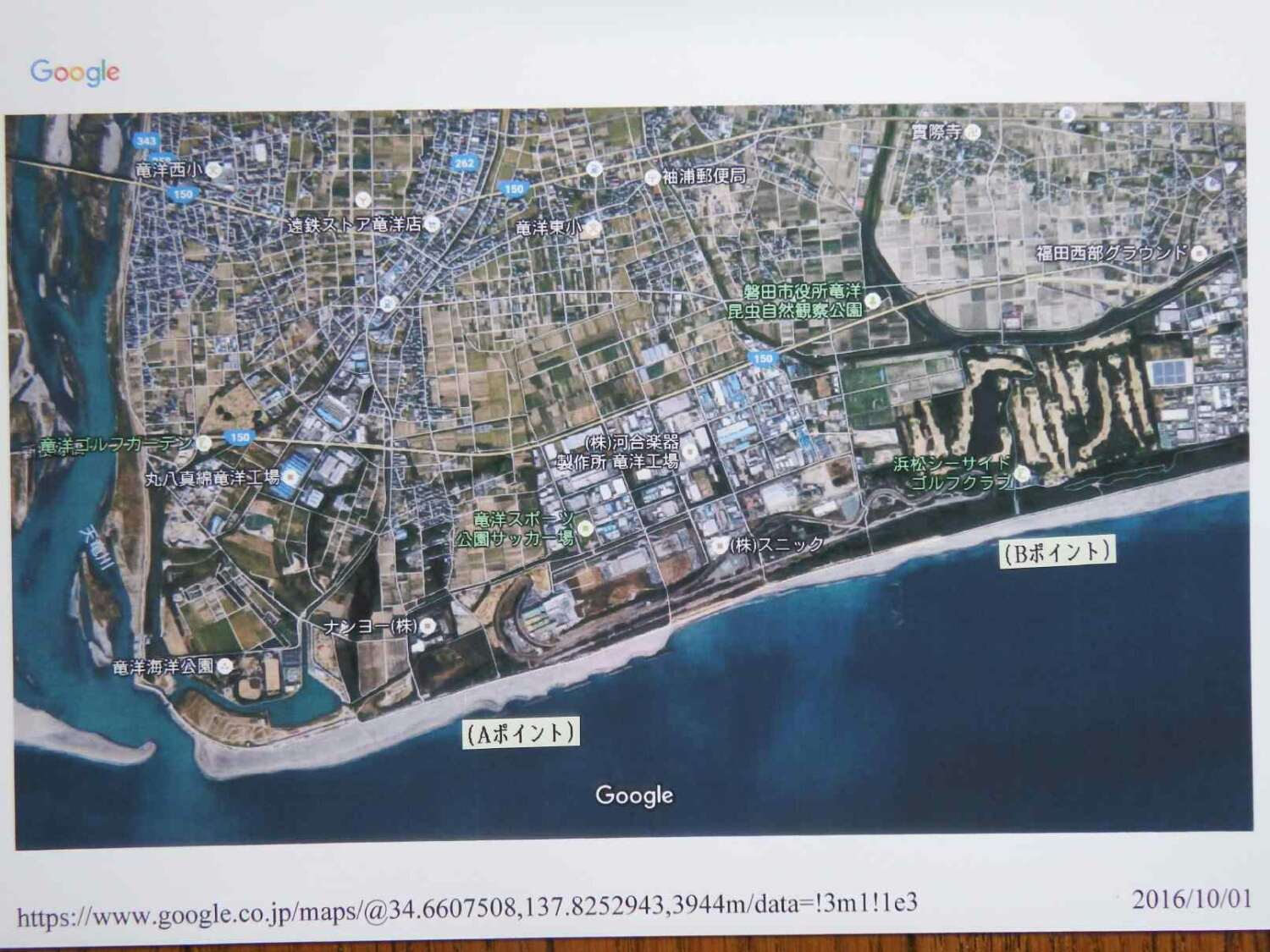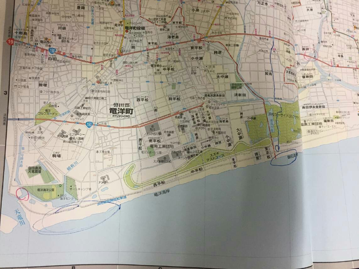静岡県の地理をほとんど知らない俺は、グーグルマップで検索し、プリントしたグーグルマップを写真に撮り、ポイントにA.B.C.Dの印を付け関係者に共有して頂き、合流場所の目印にしたくてジャクソン社に送りました。