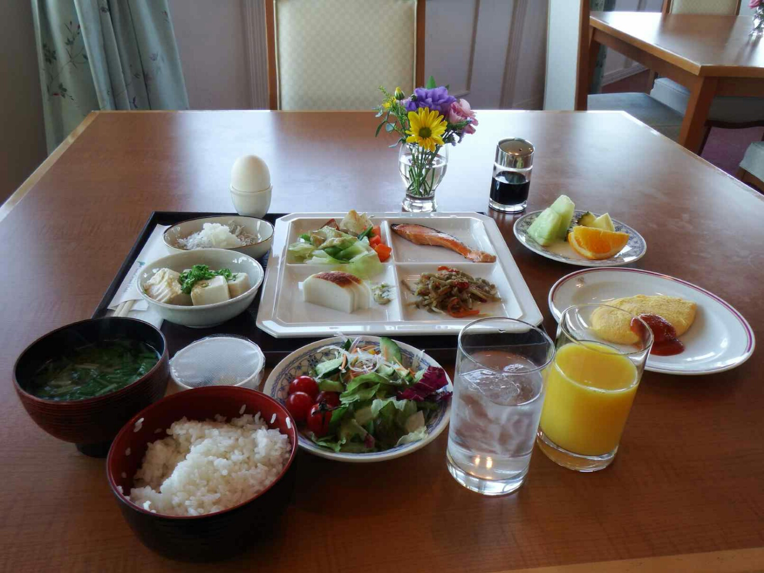 久しぶりにホテル展望レストランで朝食! 合計10泊したが、朝食は2回目です!