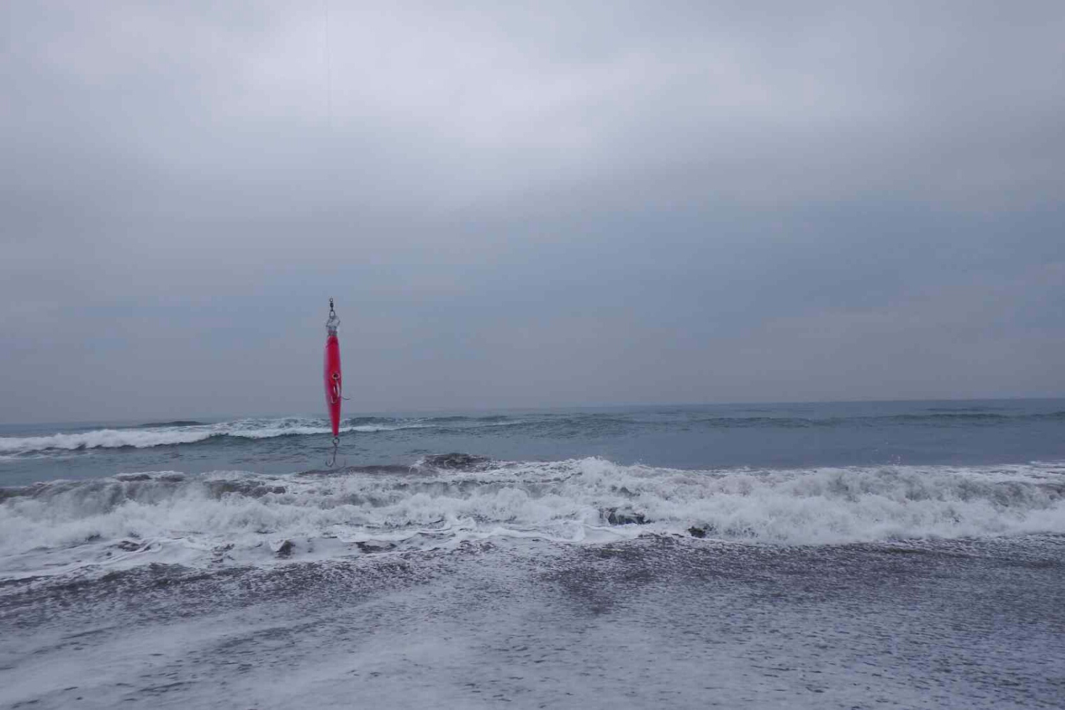 サーフに下りて見ると、海の雰囲気は申し分ないが、水温を計ってみたら12.2℃「ダメだ」と、思いながらも次回の調査を兼ね09:00まで叩いたが、生命観を全く感じないので終了。