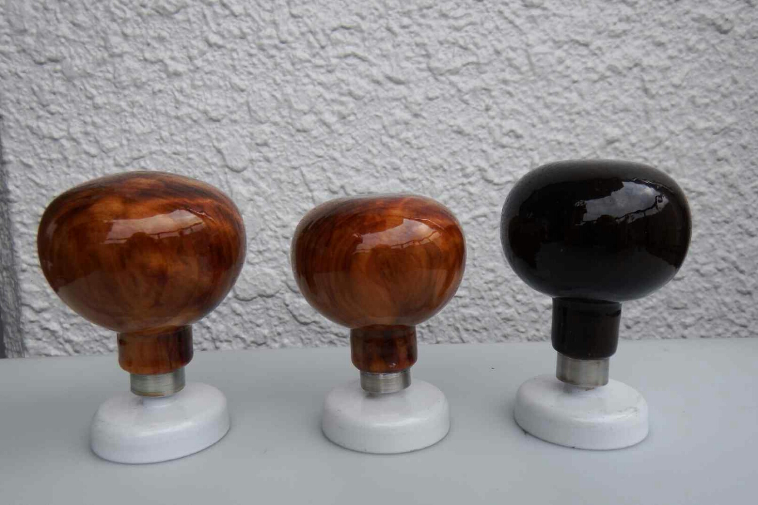 手前9個が手直ししたノブ、奥の4個がニュータイプノブ