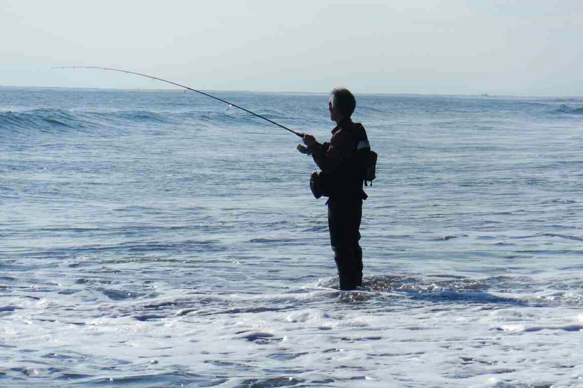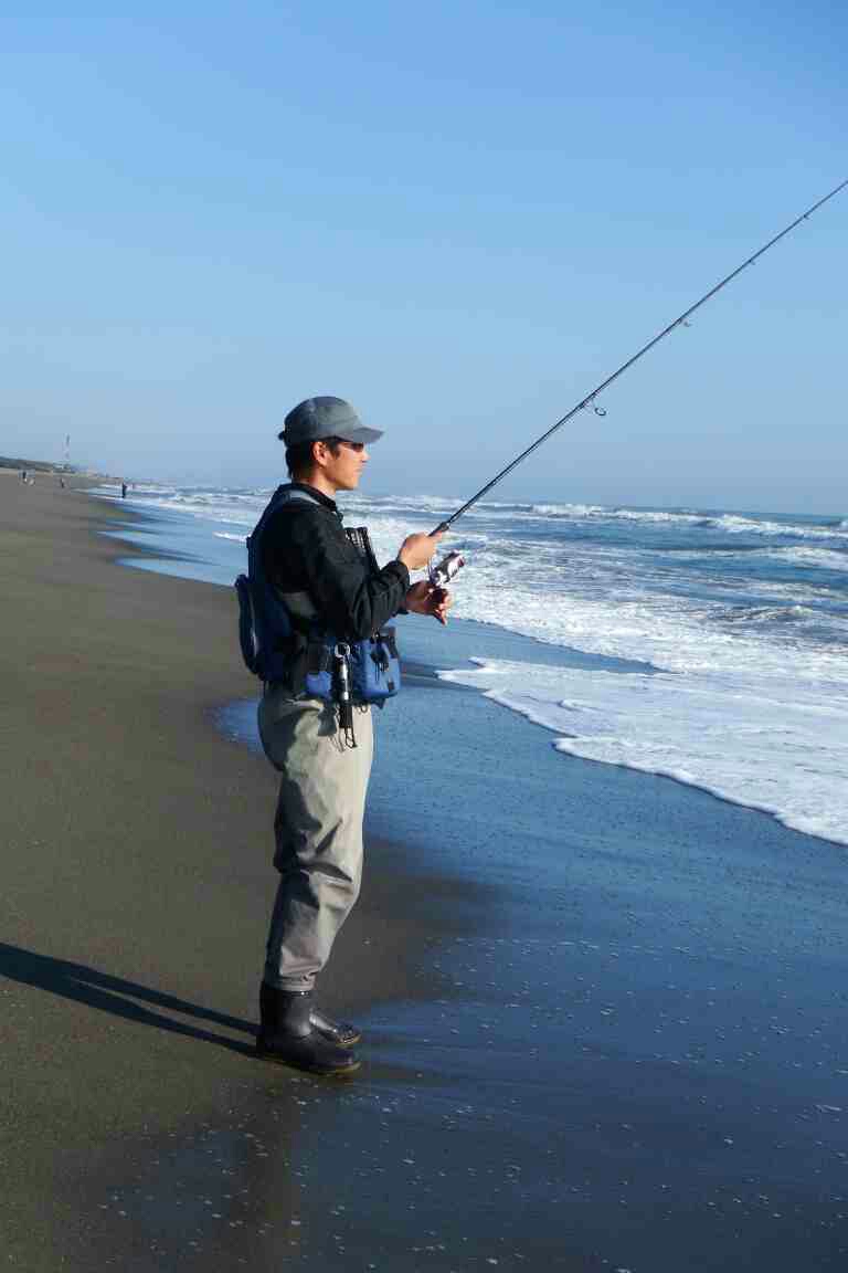 横向きでハンドルを回しながら押川さんと話していると、たいした波でもない引き波に足を攫われ横転、砂が舞う水中にロッドとリールが…