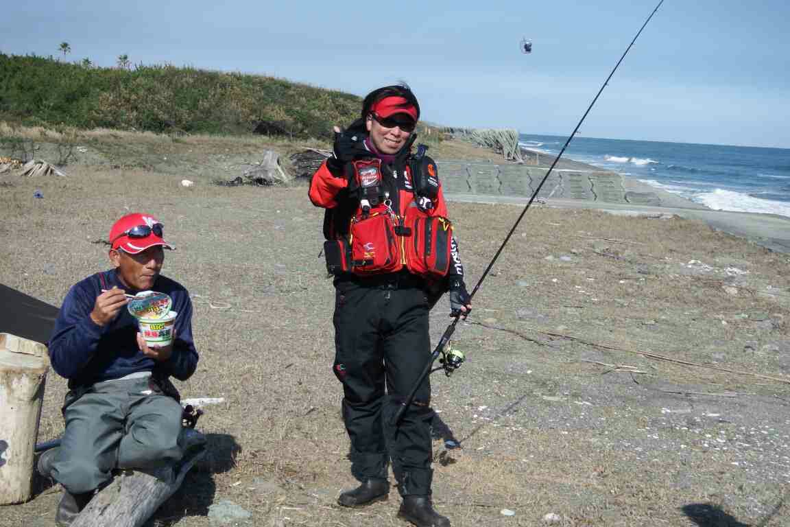 強風を気にしながら準備をしていると、地元アングラーが「何時から来られたのですか?」と声を掛けられ、暫し歓談。