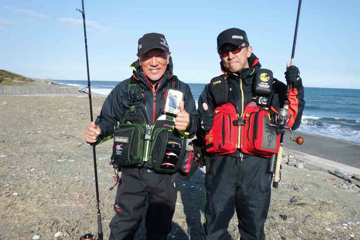 10時過ぎに塚ちゃんが現われ、更に押川さんも現われ、4人でバラケて叩いたがノーバイト、水色は良くなって来たが相変わらず波が高く釣り辛い。