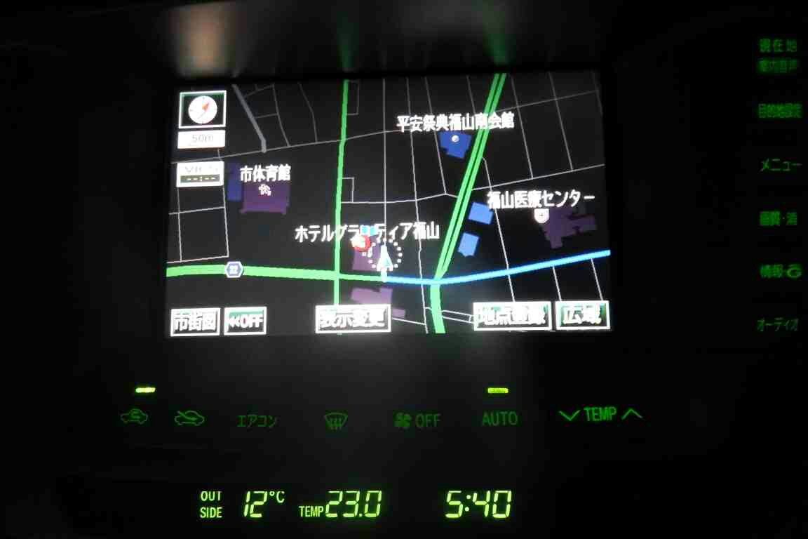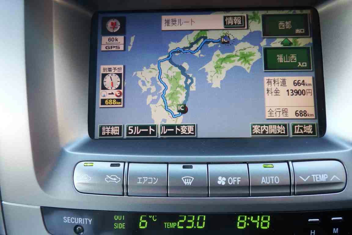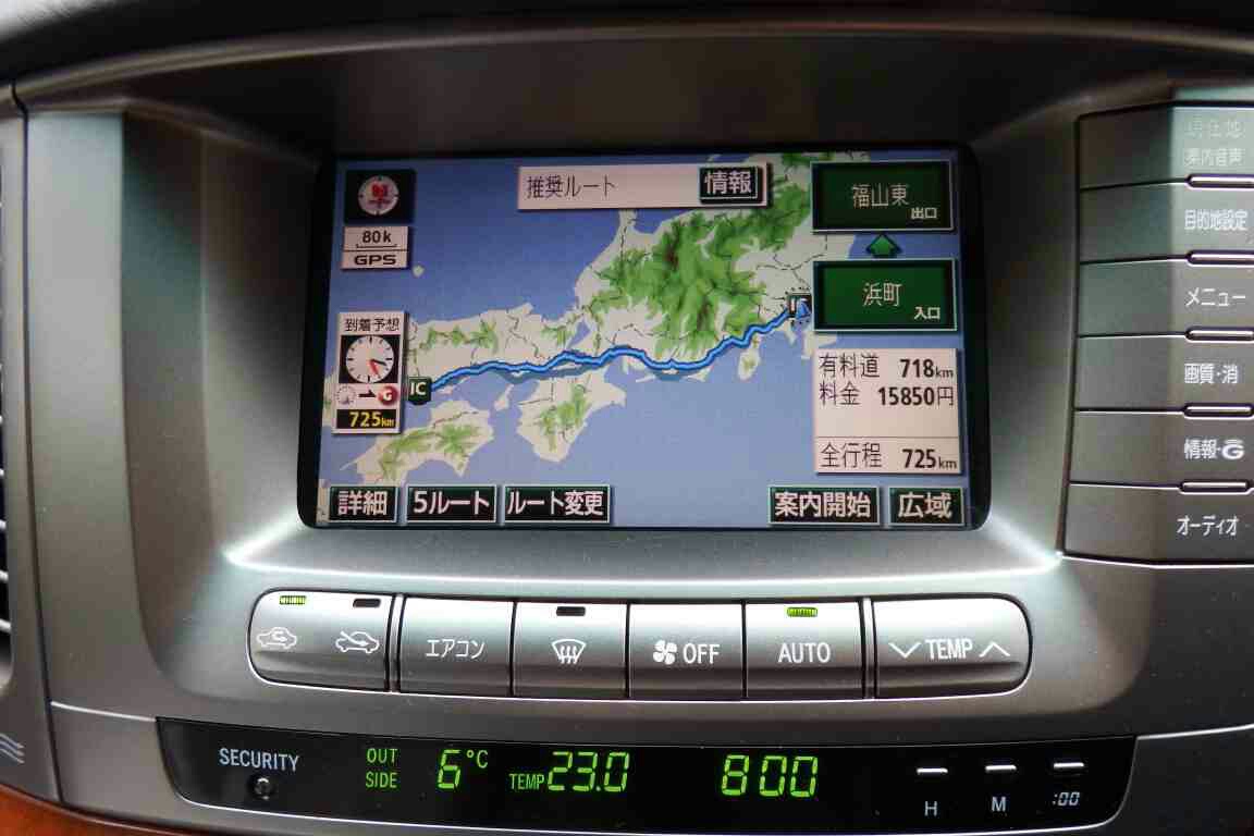 福山市のホテルまで走行距離725km、到着予定時刻は17:20