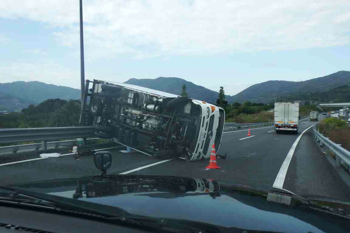 ヤット渋滞から抜け快適にドライブしていると、愛知県に入ると又渋滞、今度はトラックの横転事故。