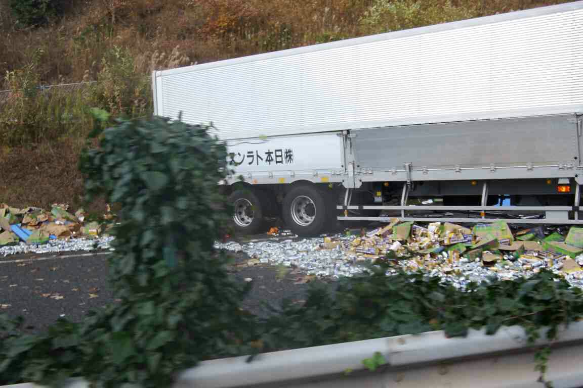 積荷は缶ビールのようだ、辺り一面ビールの匂いが漂っていた。