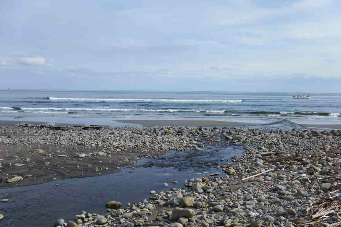 ご覧の通り、ゴロタサーフですので荒れても余り濁らないと思いますが、2.3箇所のポイント以外は比較的浅いので満潮時のみ釣行可能、滞在中に荒れたら来てみようかと思っています。