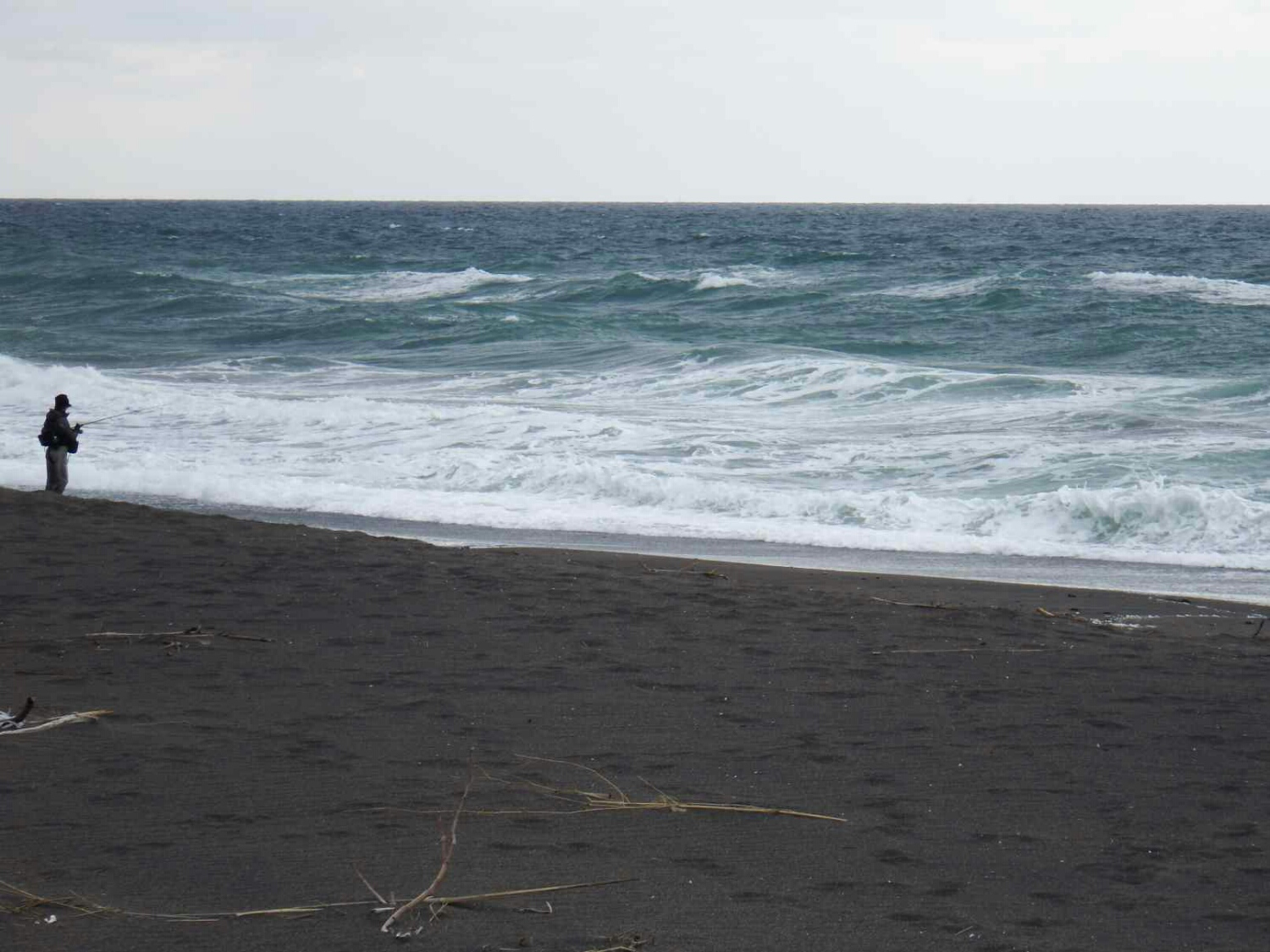 その訳は、昨日の午後も北東の風が強く、ピンテールチューン27をフルキャストしていると、3ヶ月間釣りをしなかった所為で指の皮が軟弱になり、キャスト時にPEラインを引っ掛ける指が切れかかり、今日40gのジグを投げたら完全に皮膚が切れると思い諦めました。