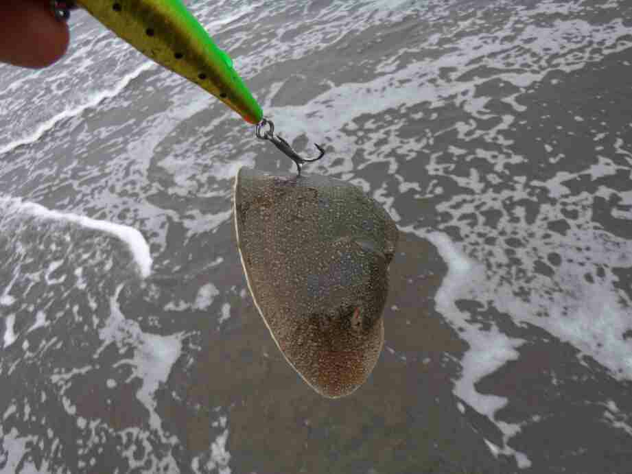 重量感+暴れる抵抗感を感じるとハンドルを回す手は停止し、ロッドでヒラメの抵抗をイナシつつ、何とか騙し賺してブレーク付近まで寄せたときに大暴れ。