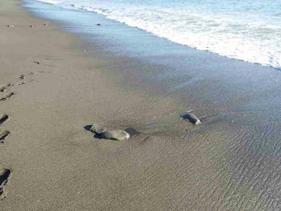 元来は無かったはずのゴロタ石がごろごろ転がっていて、砂浜はズブズブ!