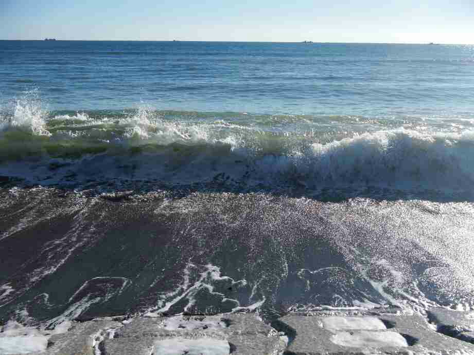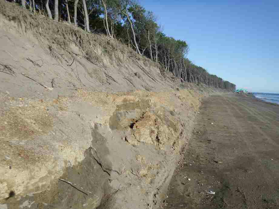 だが、2016年に行って見ると土手は波に削られ、土手の面影は無く当時を偲ぶ痕跡のみ!