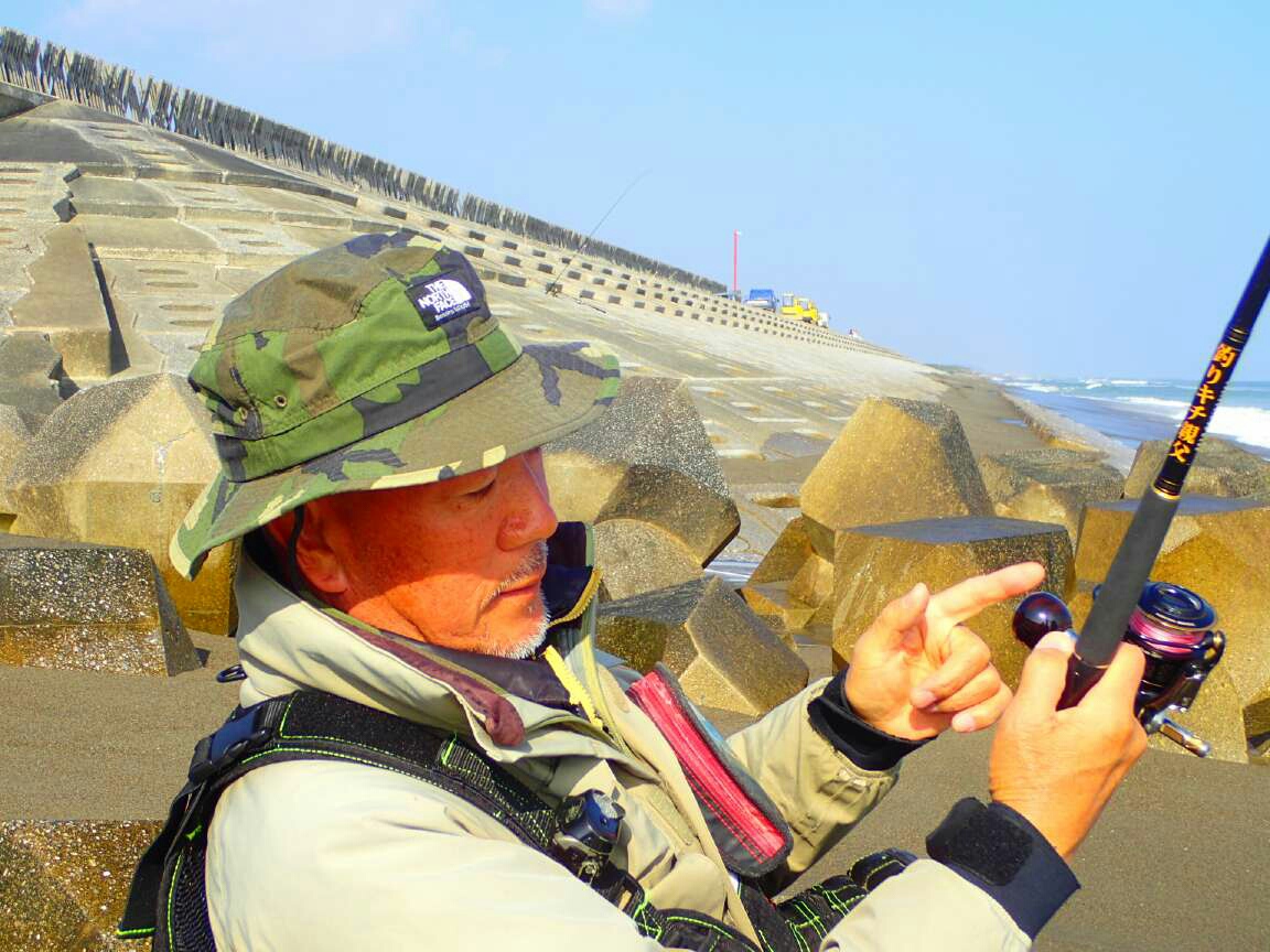 オオニベにしては動きが変だが、オオニベを前提に考えると右側のテトラが邪魔、“奴”が沖に向かって爆走している間にロッドを高く持ち上げ、テトラの間を縫うように横切り右側の砂場に移動、これでファイティングポジションを確保。
