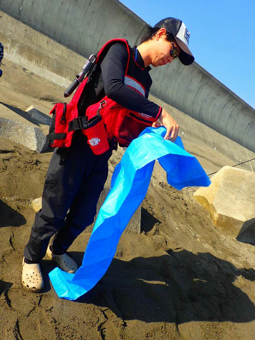 今日の海も昨日と変わらぬ濁りだが、波は穏やかなので準備を始める。