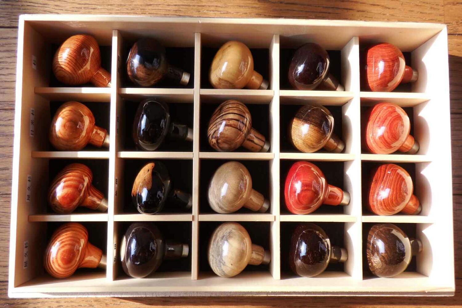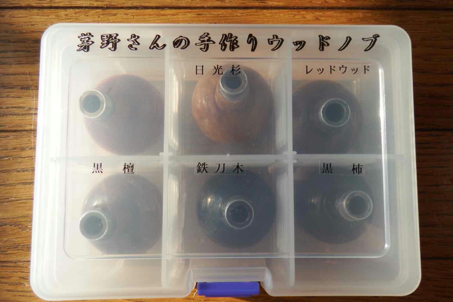 6月11日夜、飲みながら彼にウッドノブを選んでもらうつもりで、20個入りのコレクションケースを持参。
