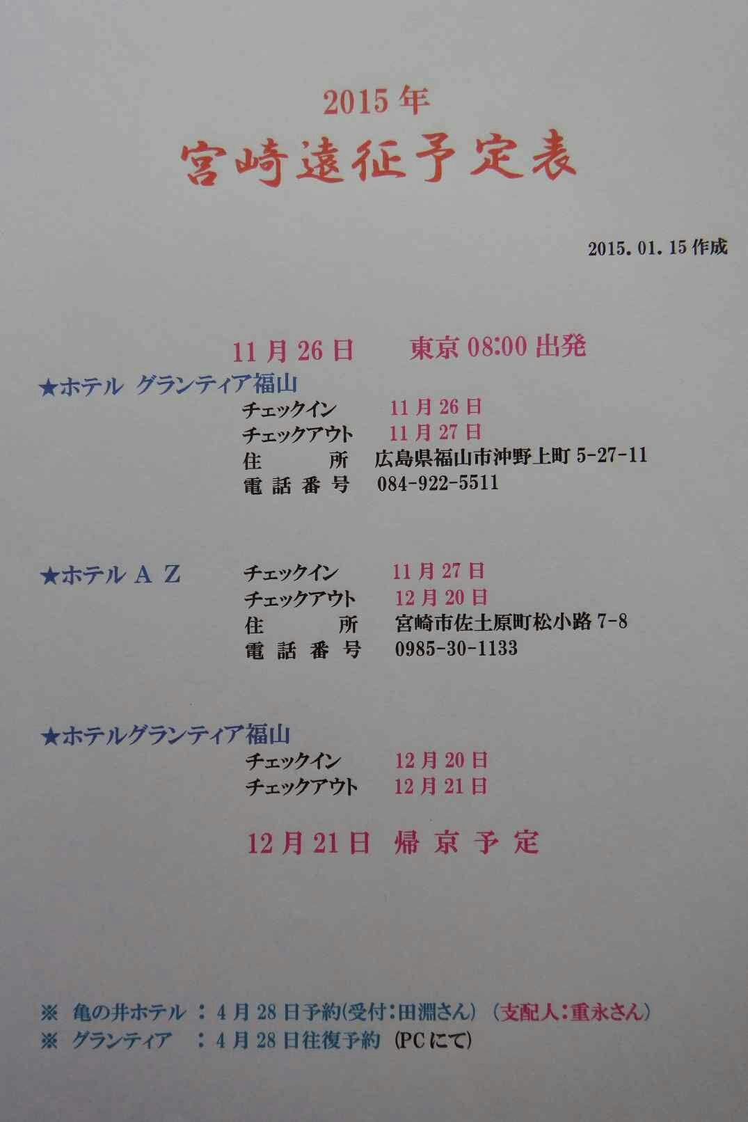 宮崎滞在中は非日常的な行動をしているので、日にちや曜日の感覚が無くなり(年齢も関係していると思います)ボケ防止の為に毎年作って行き、ホテルの机の上に置いています。