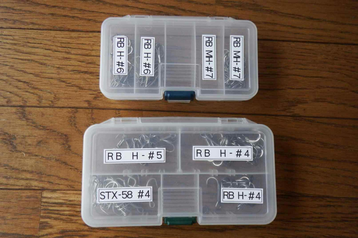 左二列はピンテールチューン27、右二列はG-control、フックはフロントもリアーもRB H-#6をセットしました。