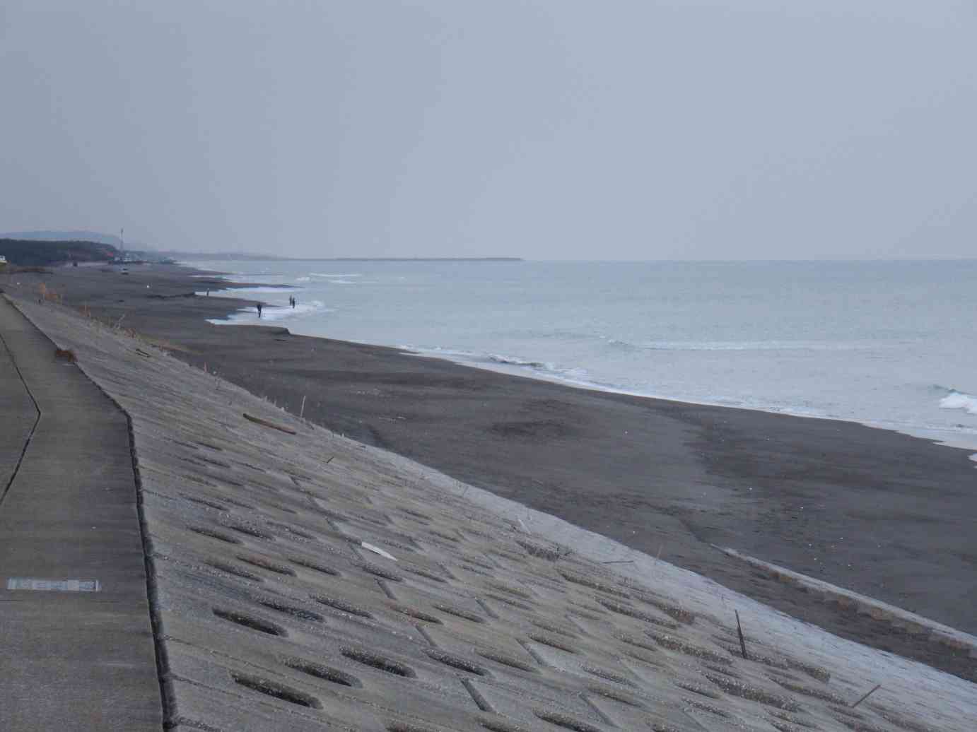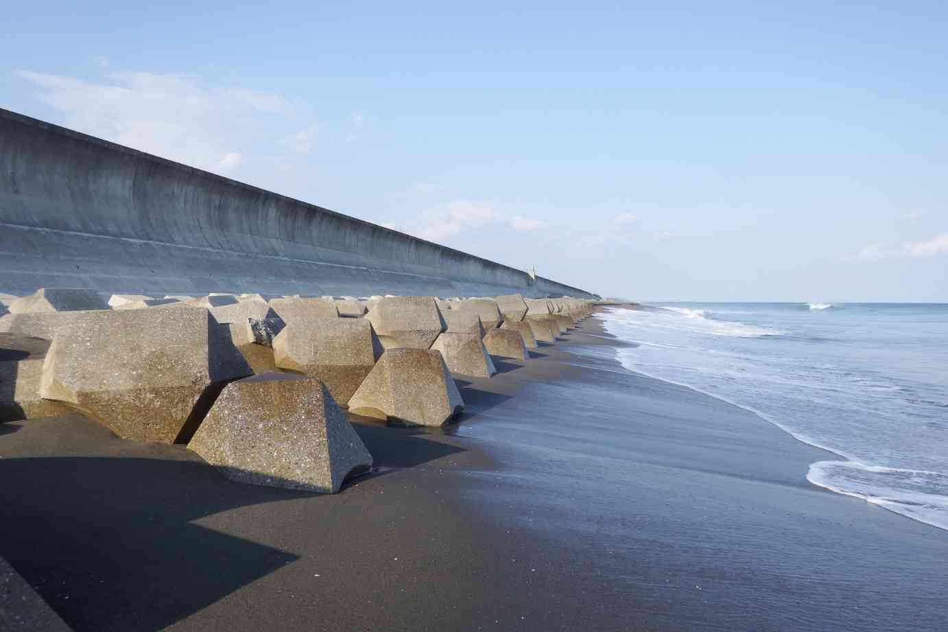 昨日まで手前のテトラは頭だけしか出ていなかったのに、砂が削り取られ一夜で激変。