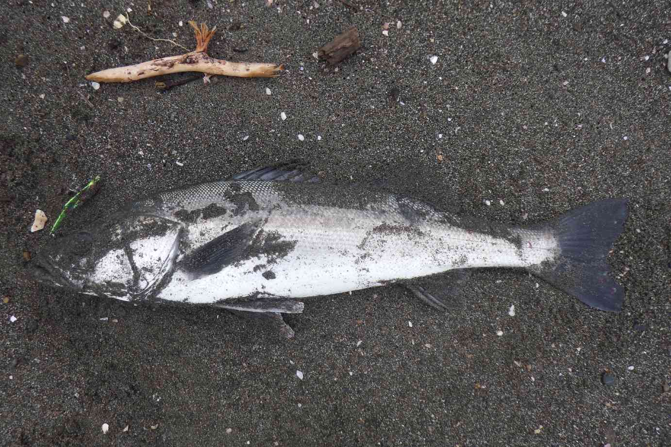 ひたすらオオニベのバイトを待つ身としては、このシーバスは迷惑魚になります。