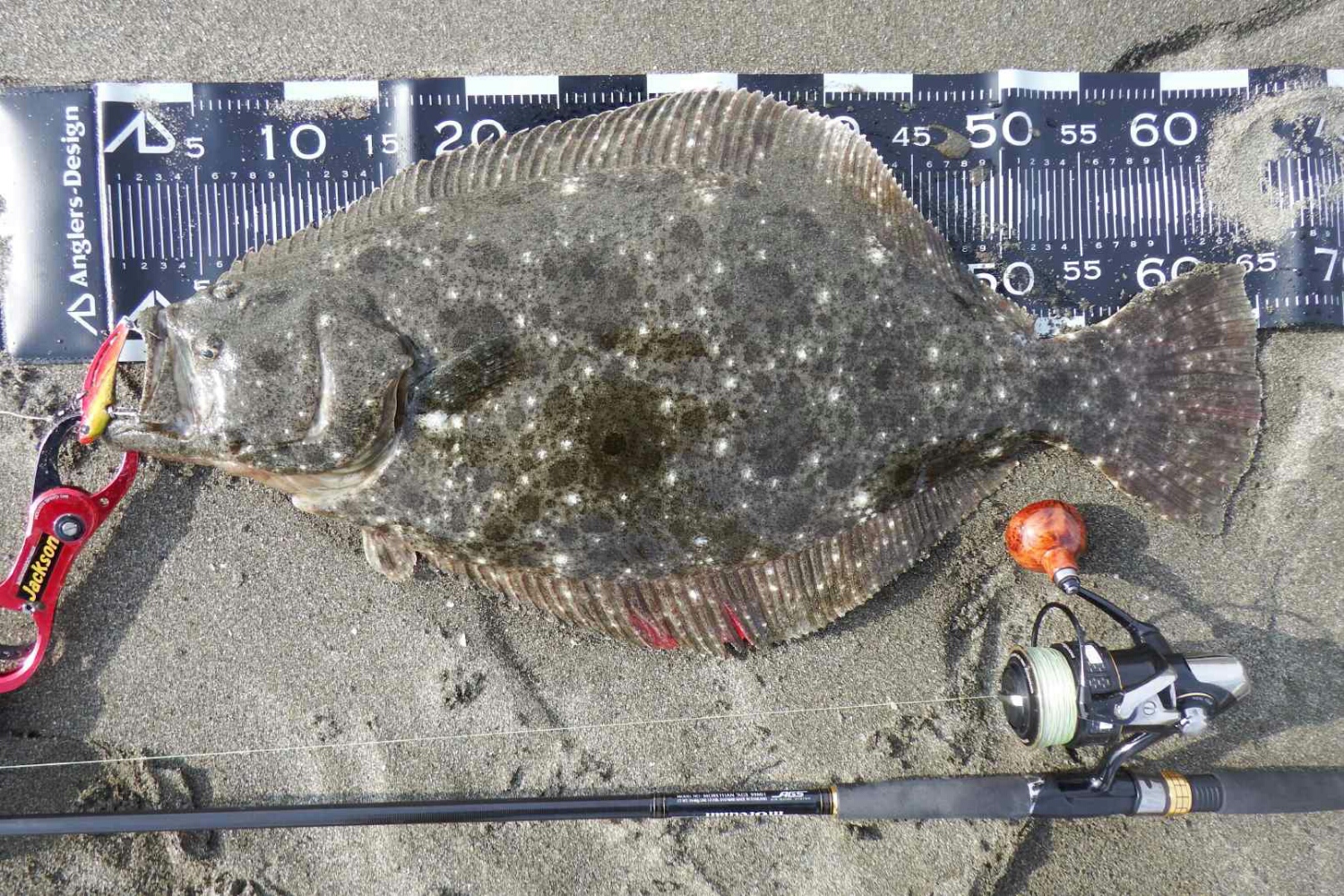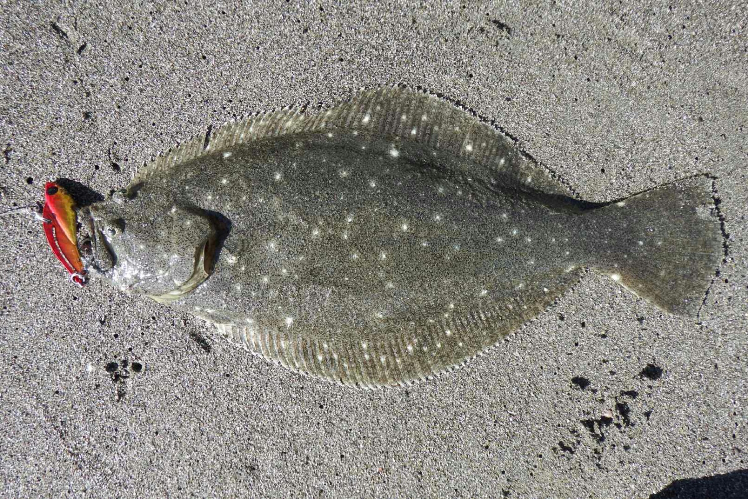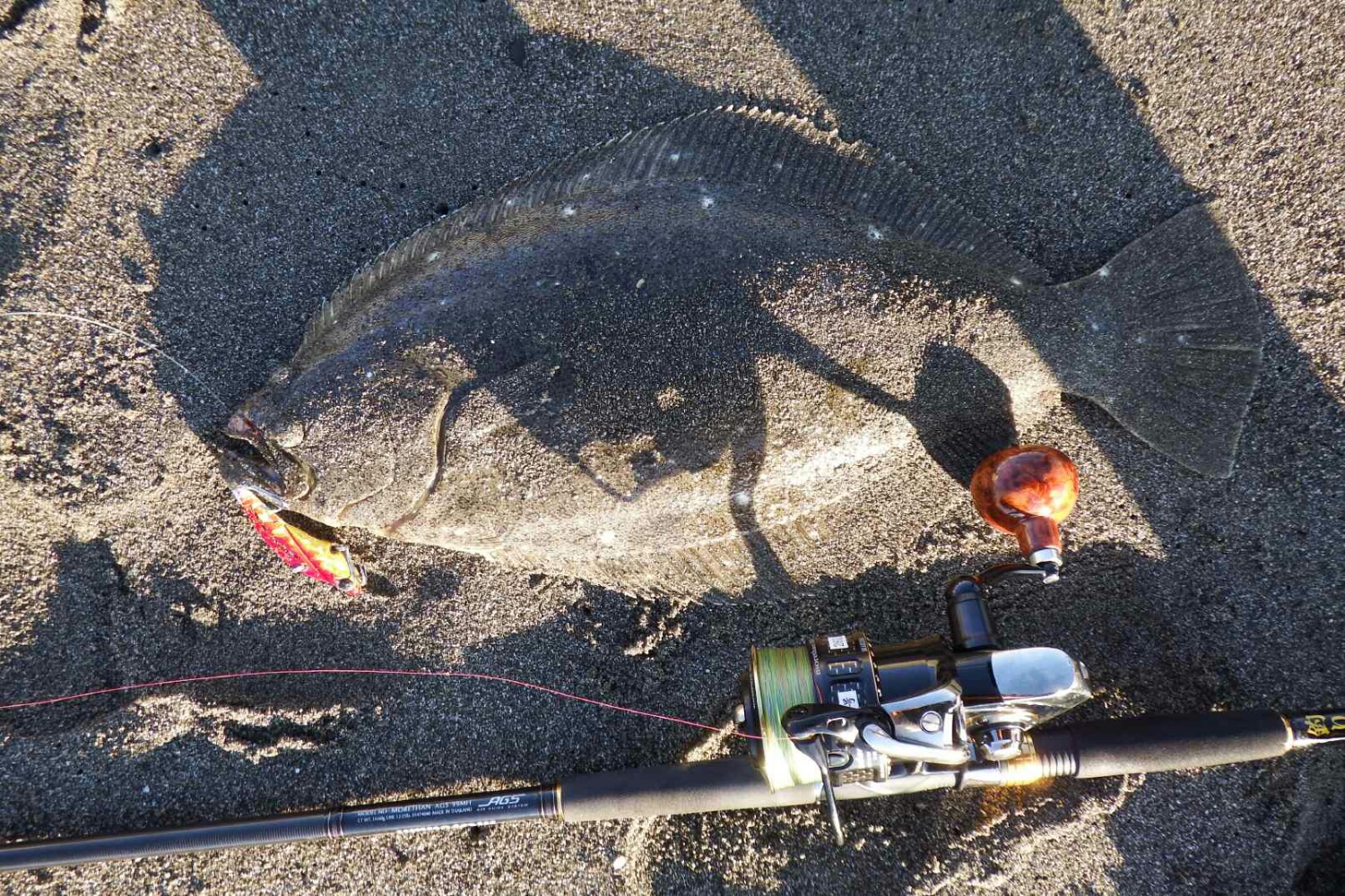 10投ほどでバイト!合わせを入れハンドルを回すと、明らかにヒラメの引き。