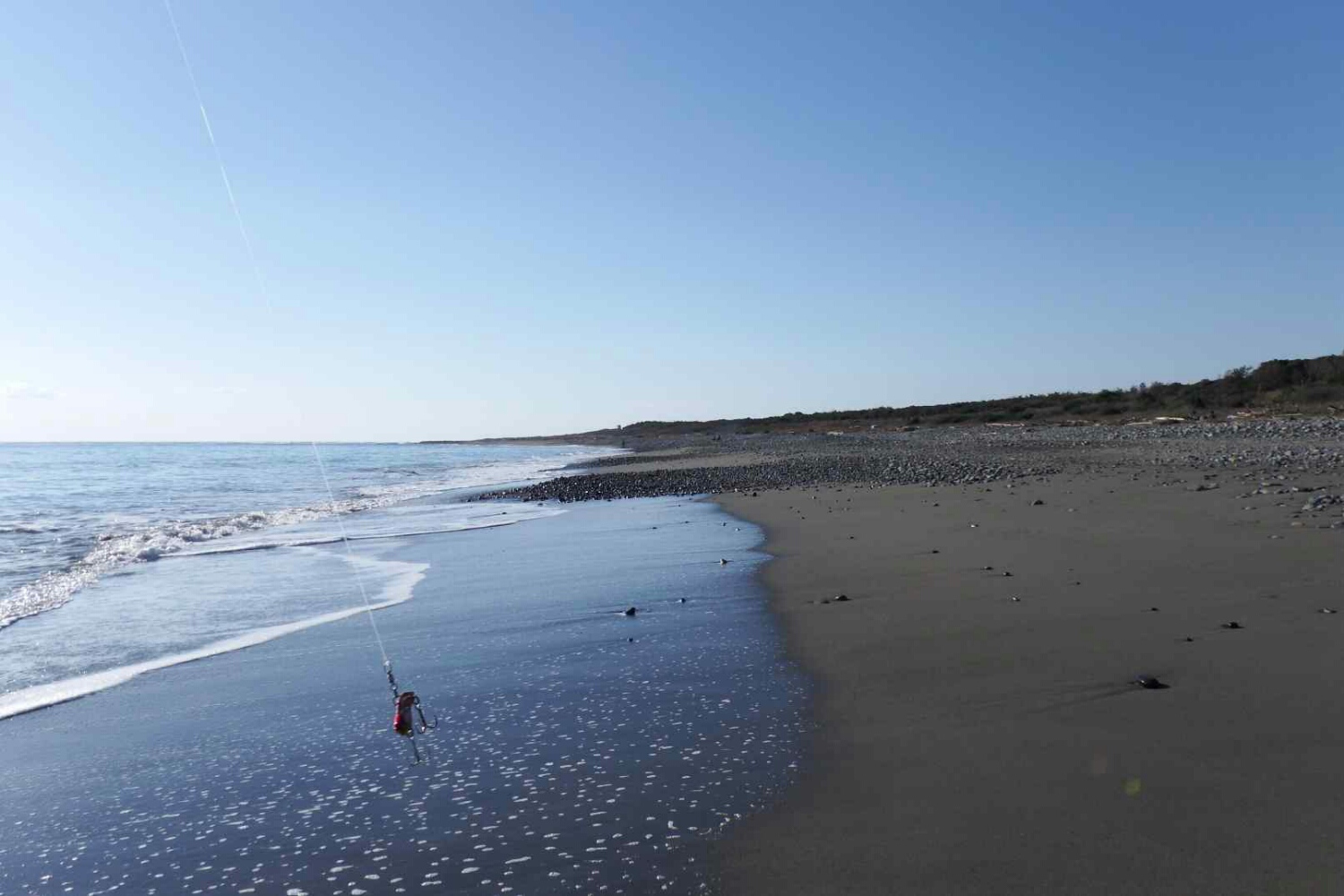 撮影後、濁りが酷いのでサーフを移動する事にし、昇さんの提案で黒鯛を釣ったサーフへ30km程北上。