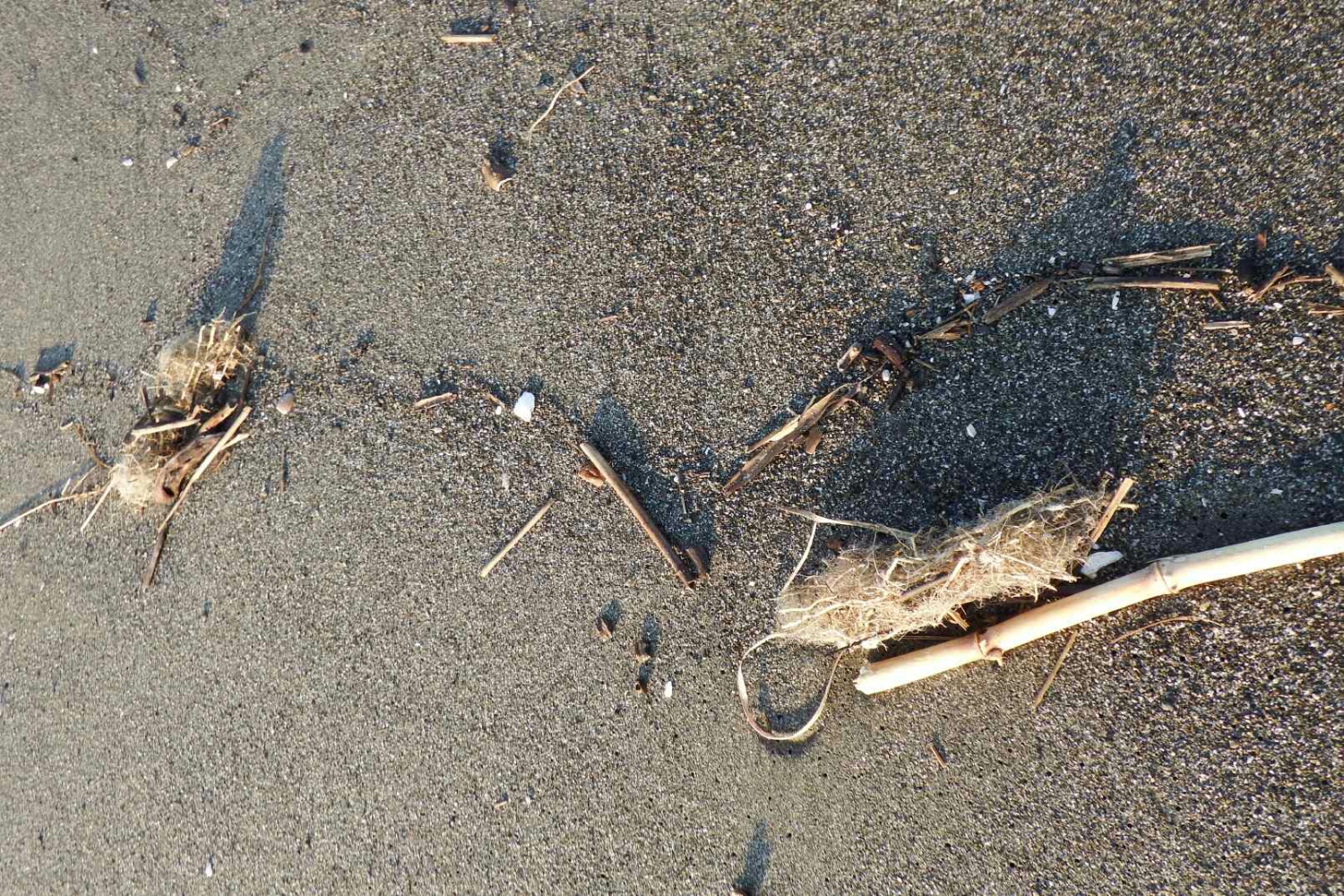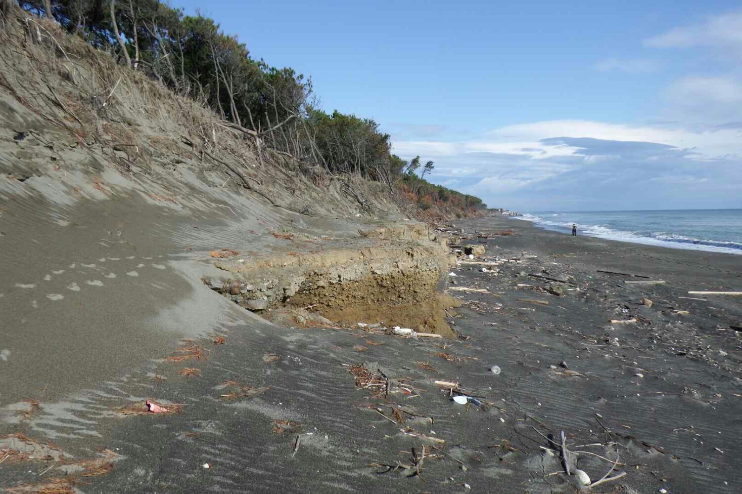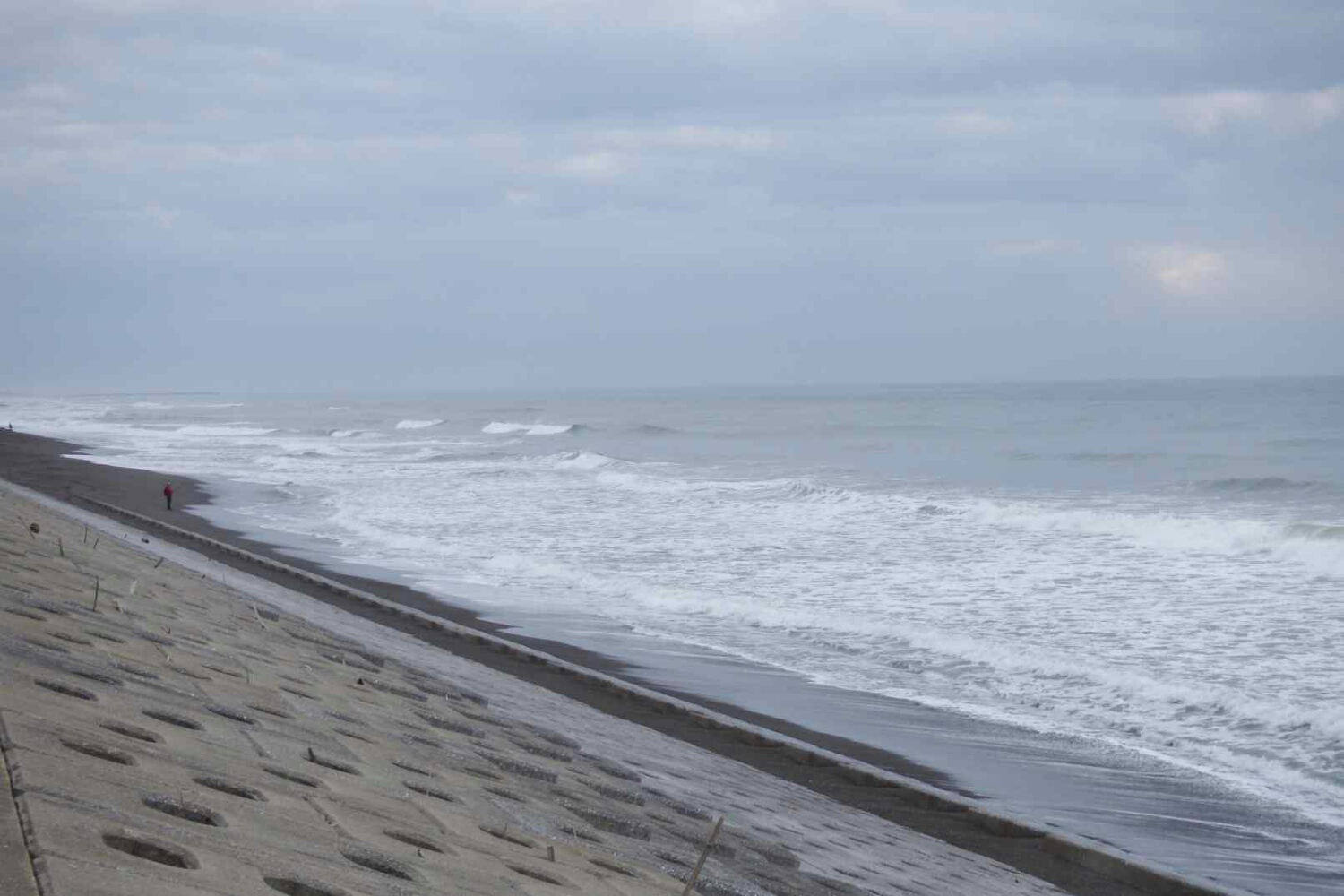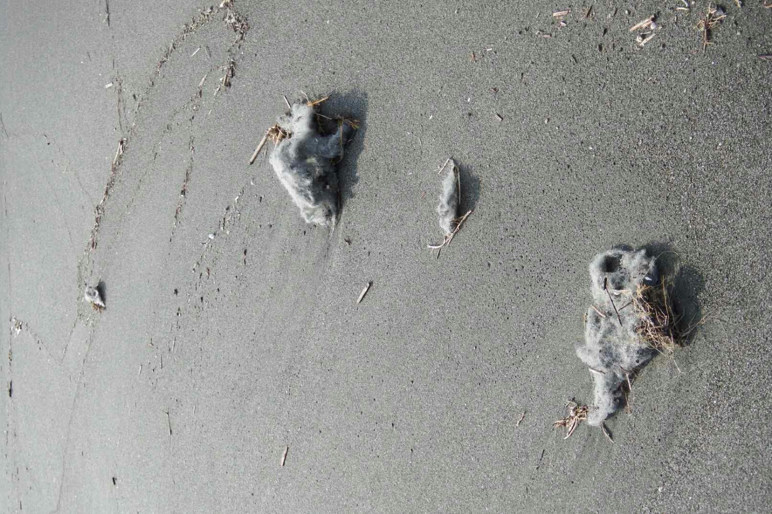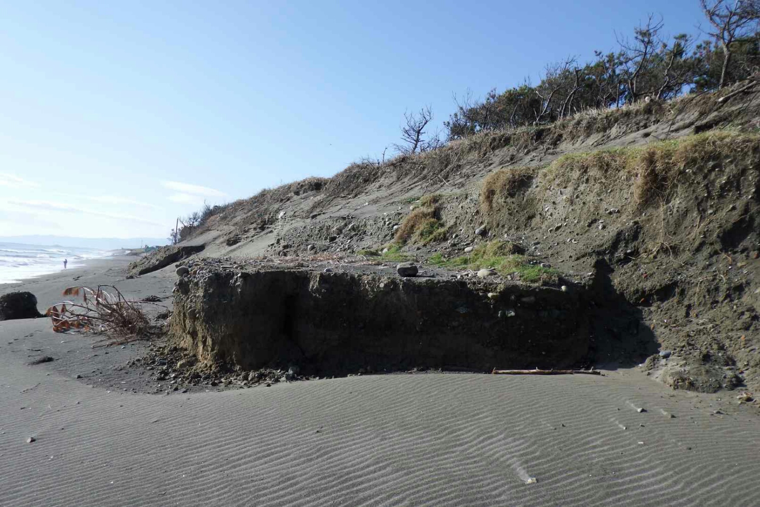 こうして流された土手の土は海に堆積し、荒れる度に舞い上がる。