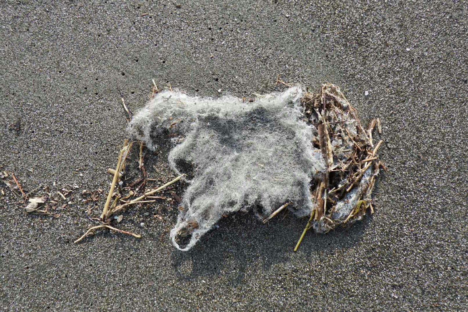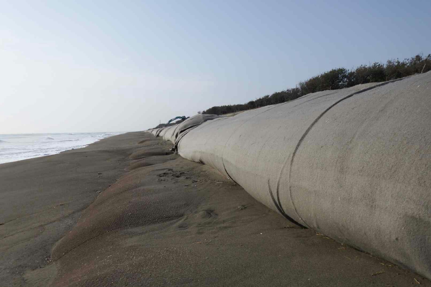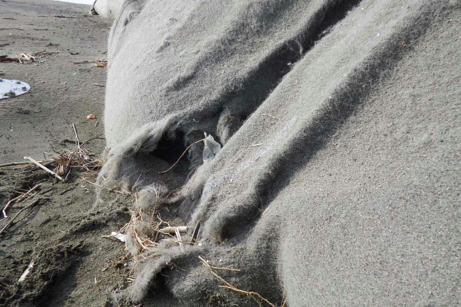 土嚢の表面は絨毯の様な布で出来ている為、波に削られサーフと海中に綿状で漂っています。これは明らかに環境汚染です!!