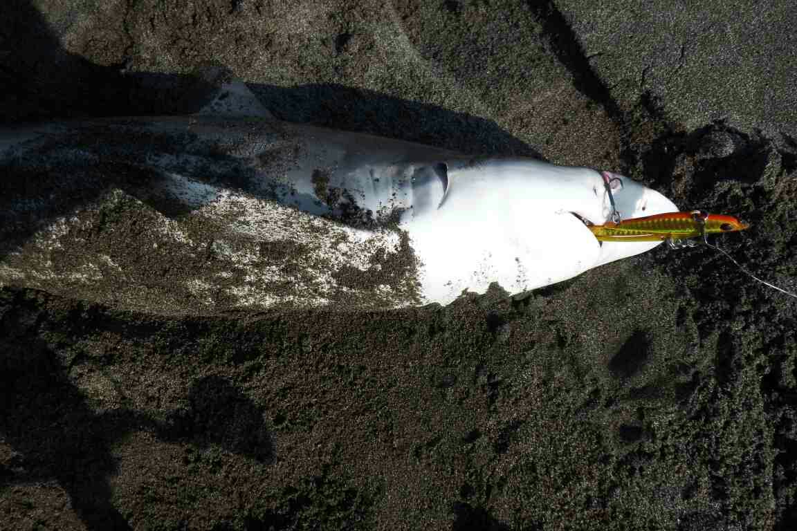 仲間が集まり魚種を尋ねるので「ヒラかもしれません」と答えたが、確信は持てず、引き応えを十分堪能した獲物はサメでした。