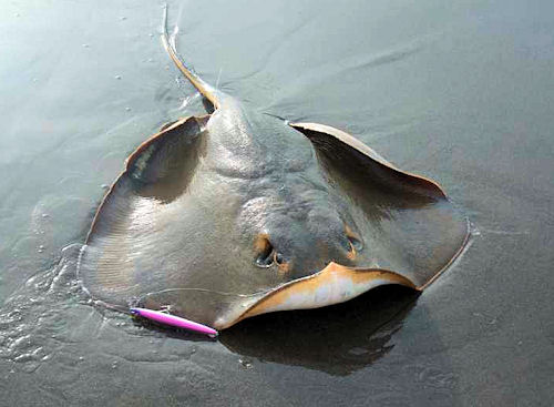 20数分の格闘後、上がって来たのは10kgオーバーのアカエイ!