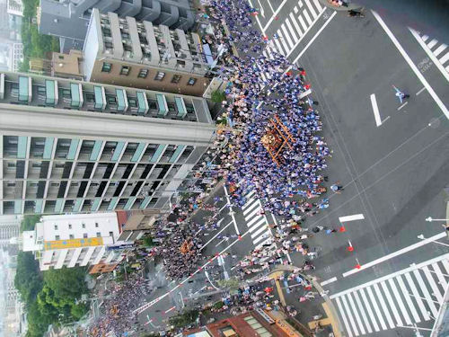 交差点を曲る時「舞わせ舞わせ」と掛け声を掛けながら、