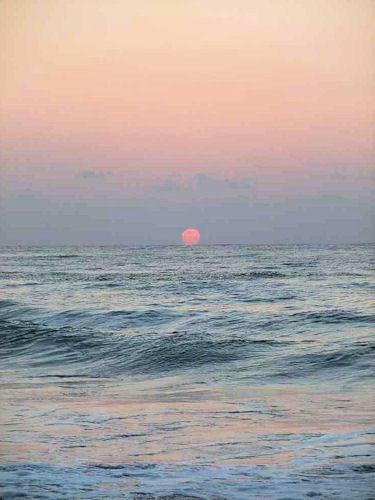 05:20、宿の駐車場に車を置きサーフに下りる。