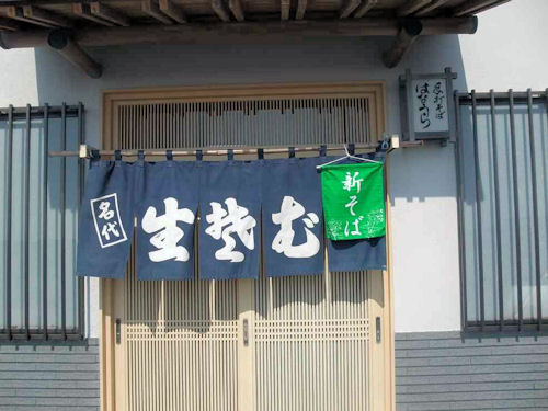 (和田漁港の蕎麦屋さんのノレンに新そばの小旗)