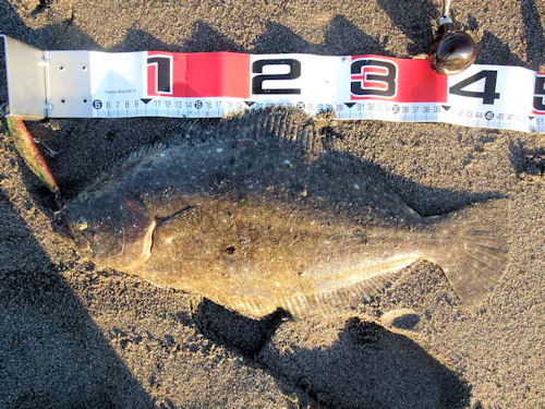 (06:00、51cmのヒラメをゲット)