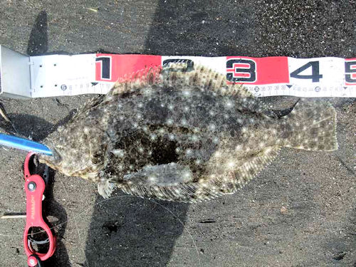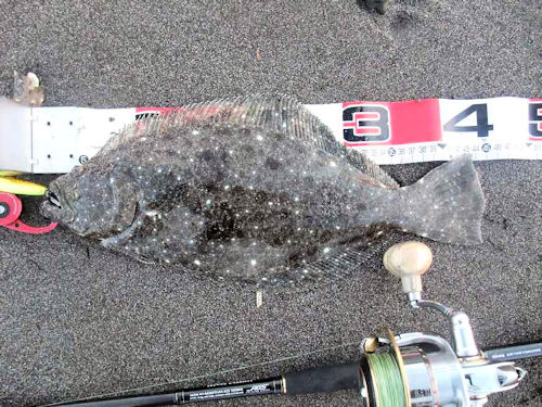 ドラグを締めハンドルを巻くと確かなヒラメの引きにニンマリ。