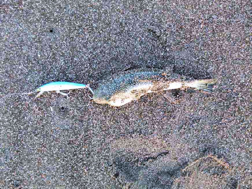 「さっき波打ち際で掛けたがバラシテしまった」とのこと。