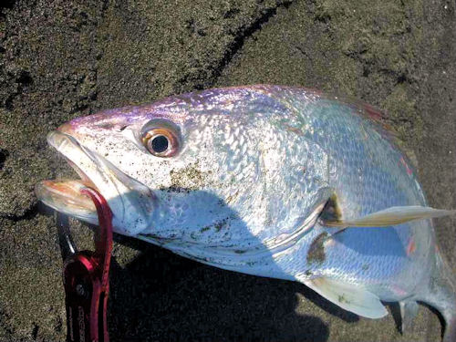 更に慎重になり充分バテさせてから、寄せ波と同時にズリ上げる。