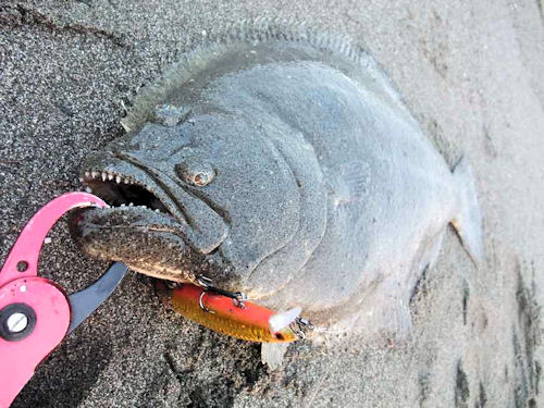 遂に尾鰭が見えた、「デカッ…ヒラメだ」と思わず叫んでしまった。
