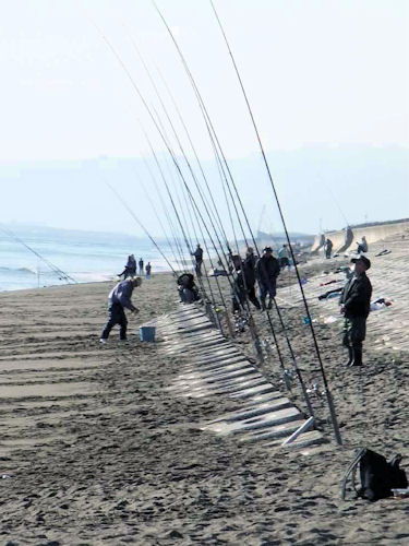 今日は波も高く横潮が早いためか、投げ釣り師はマバラです。