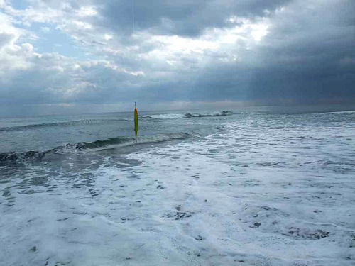 離岸流が少し出来て良さそうなポイントに遭遇したが、無反応。