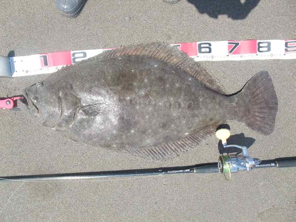 お互い情報交換すると、ヨサゲなポイント付近でヒラメをゲットした御仁は小原さんでした。