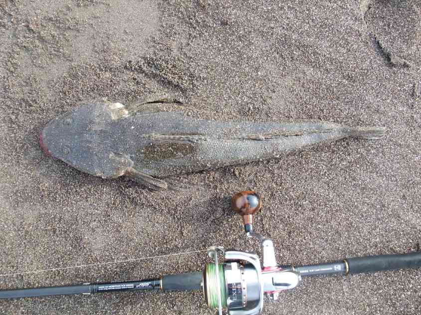 サーフに同業者は居なくなったが、諦め切れない俺は続行して何とか40cm弱のソゲをゲット。
