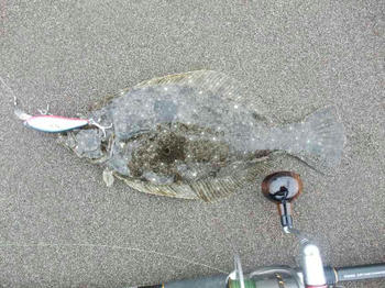 彼「最初、少し離れた浅い所で釣りをしていたが、反応が無いのでこのポイントに移動、キャストするたびにイワシが引っ掛かり、暫くするとヒラメが釣れその後マゴチが釣れだしました」