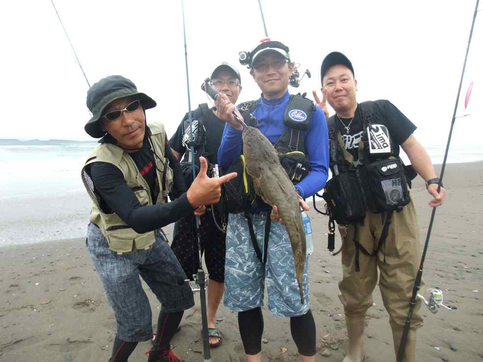 ヒラメとは違う引き、4人がファイトに気付き駆け寄る、