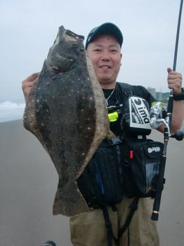 (ビリケンさん、55cmの初ヒラメGET!笑が止まらず)