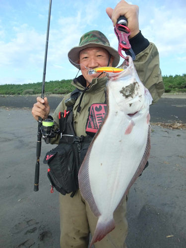 Y君は‘ヒラメハンター90FS’に似たルアーをキャスト、20分ほど経過した頃バイト!