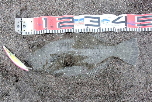 ヒラメにとって岸よりも沖の方が快適なはずだと思い遠投すると、思った通りヒットは全て沖でした。