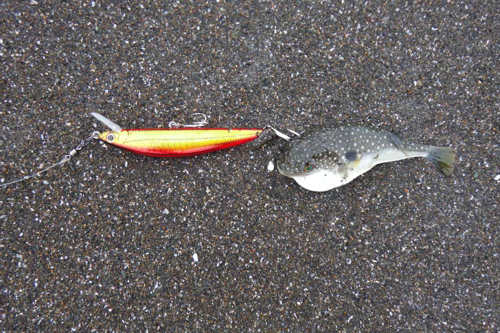 写真撮影を終えキャストすると、今度は河豚のスレ掛り。