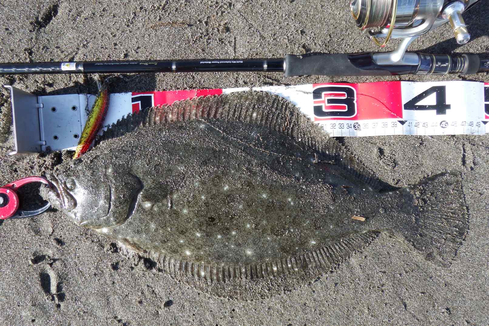 サイズはいまいちですが、一応ヒラメサイズで入魂式も済みホッとしました。欲を言えば60UPで…